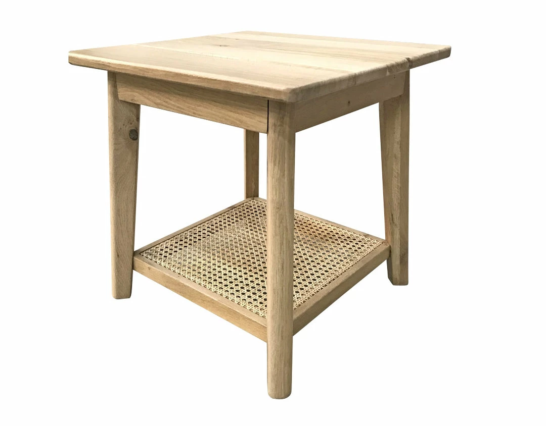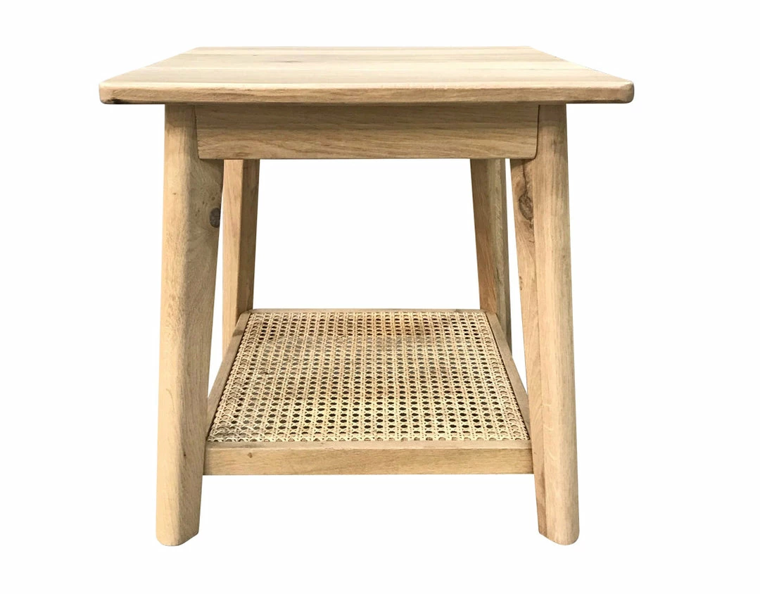 Our Amity Collection is constructed from sustainable hand crafted Oak timbers paired with Rattan woven insert shelf perfect to store your magazines, books and other bibs and bobs!