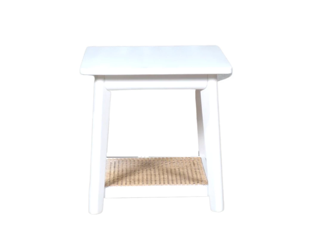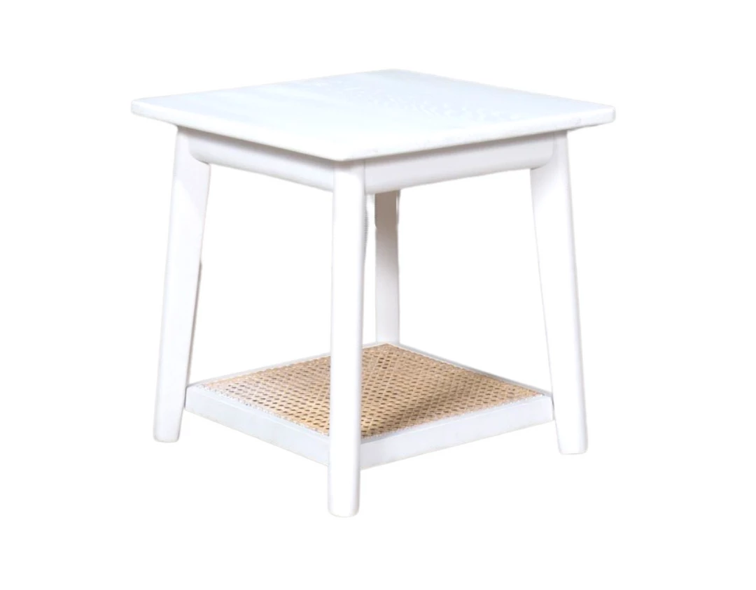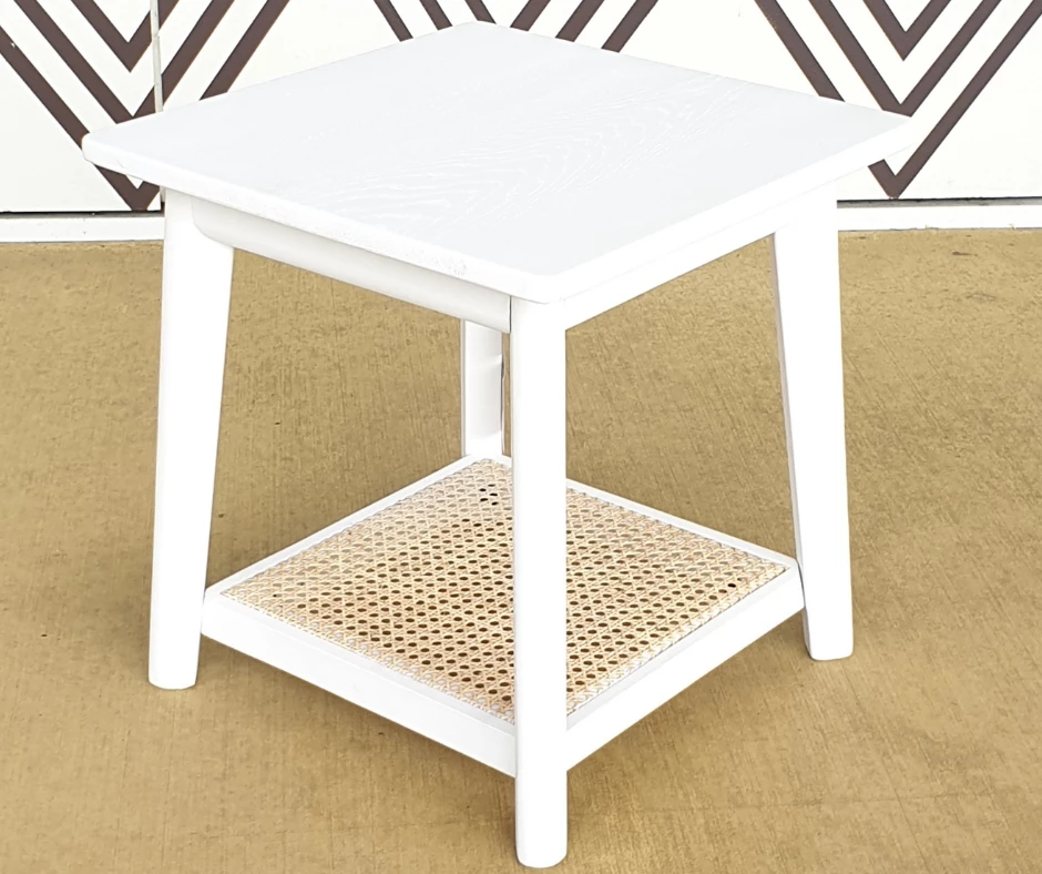 Sustainable hand crafted Oak timbers paired with Rattan woven insert shelf perfect to store your magazines, books and other bibs and bobs!