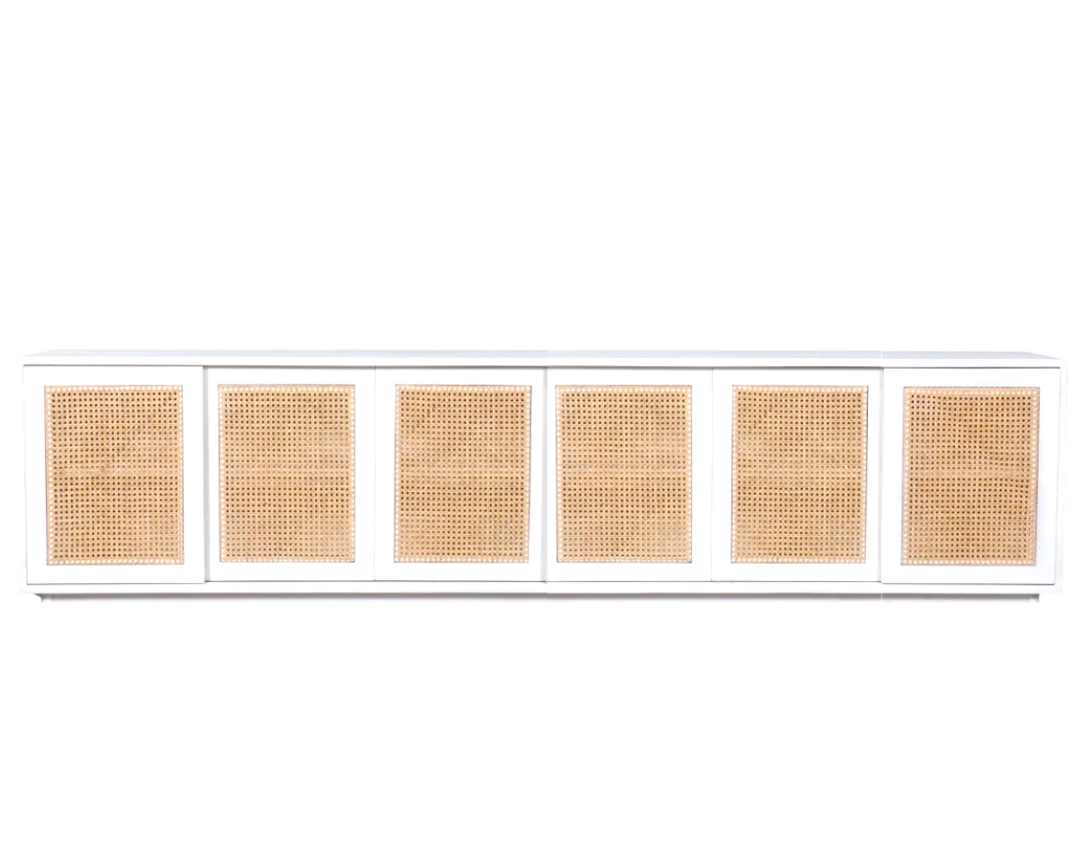 Sustainable hand crafted Oak timbers paired with Rattan woven inserts and finished in Natural Oak and White for a fresh contrast