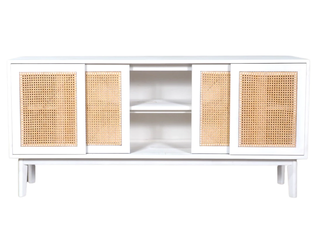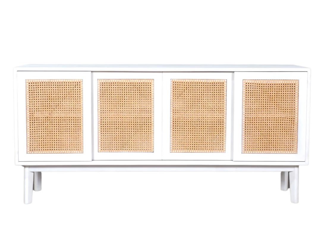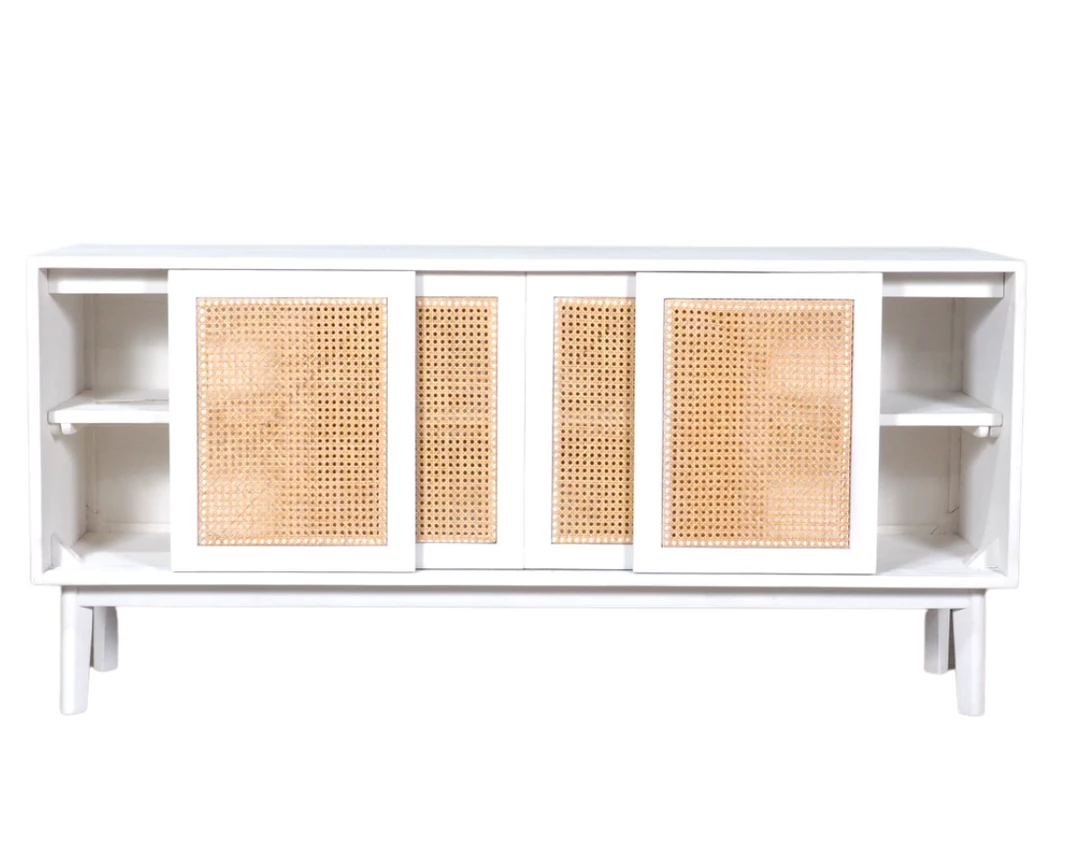 Sustainable hand crafted Oak timbers paired with Rattan woven inserts and finished in Natural Oak and White for a fresh contrast