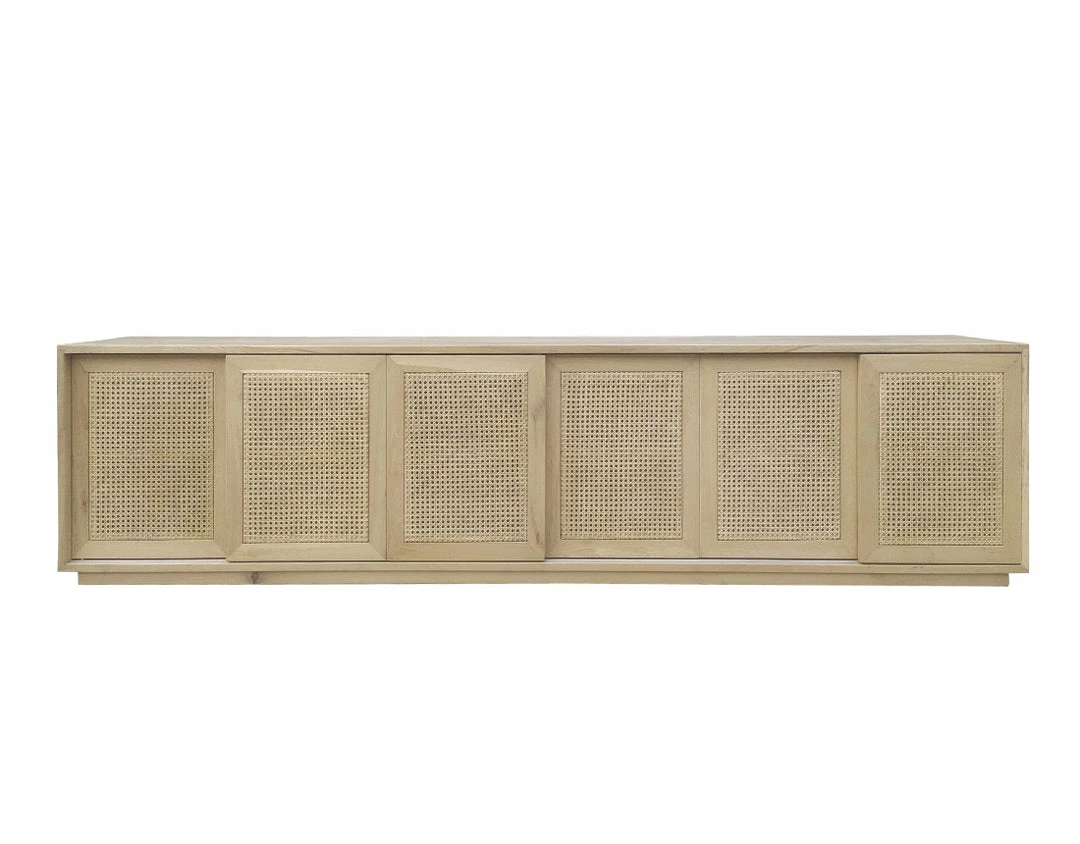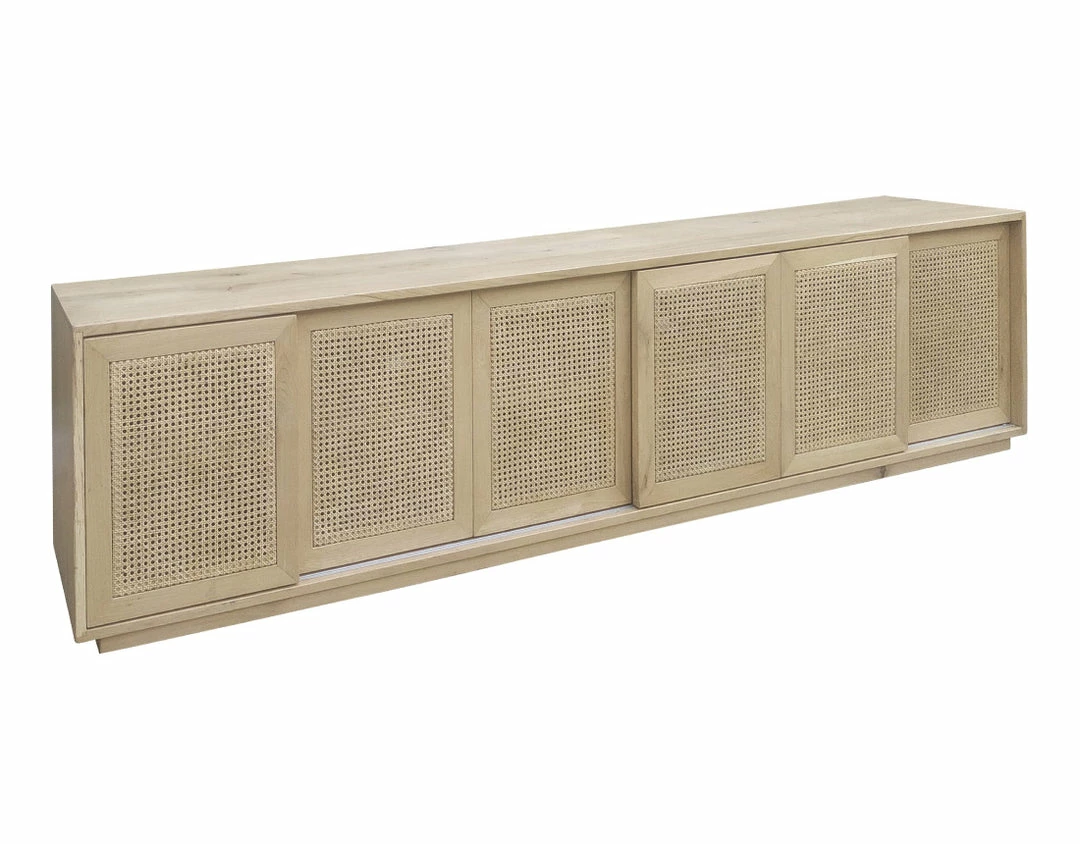 - Rattan insert sliding doors on metal tracking for smooth closing.