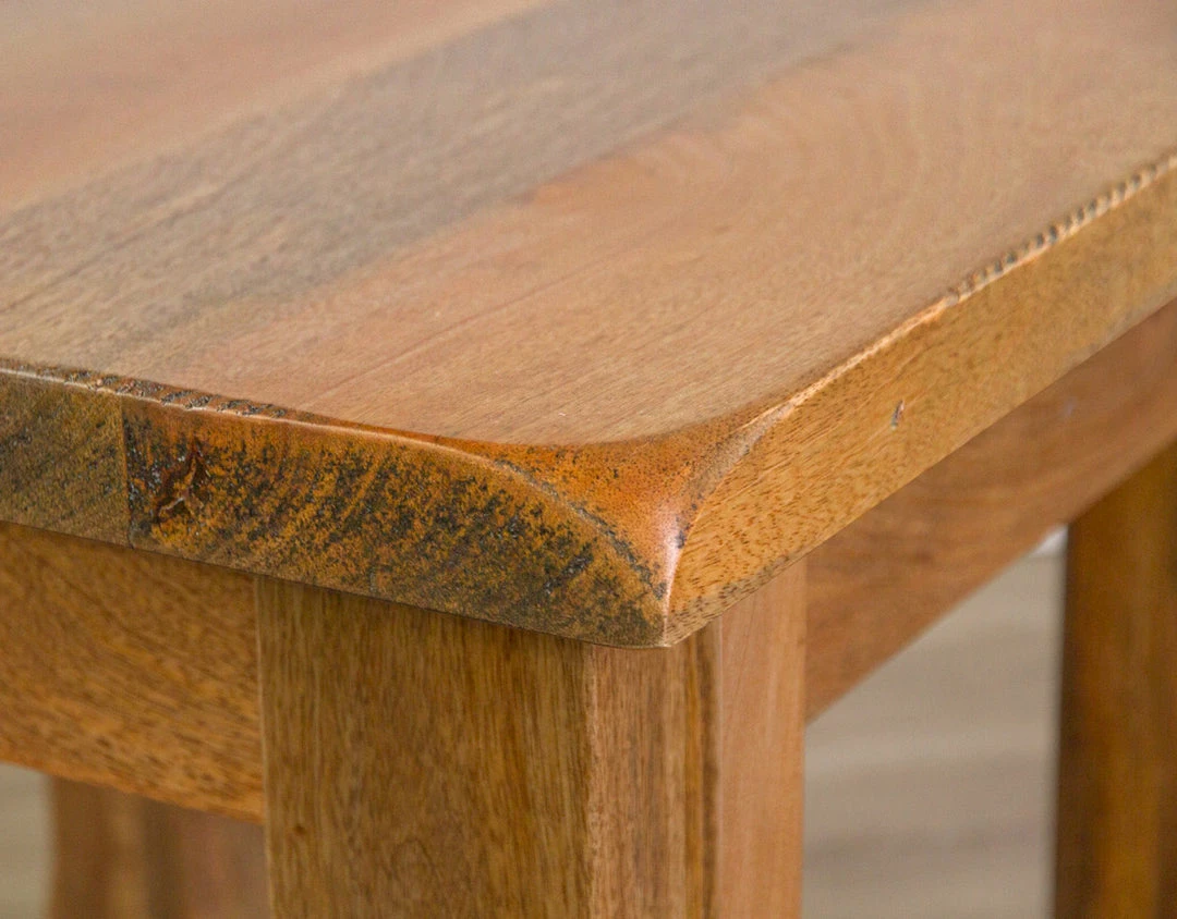 A bold design rich in texture and colour, the Bowen Collection features a hand selected sustainable solid mango wood 40mm thick top. This unique collection is sure to impress with its grandeur and character rich imperfections.