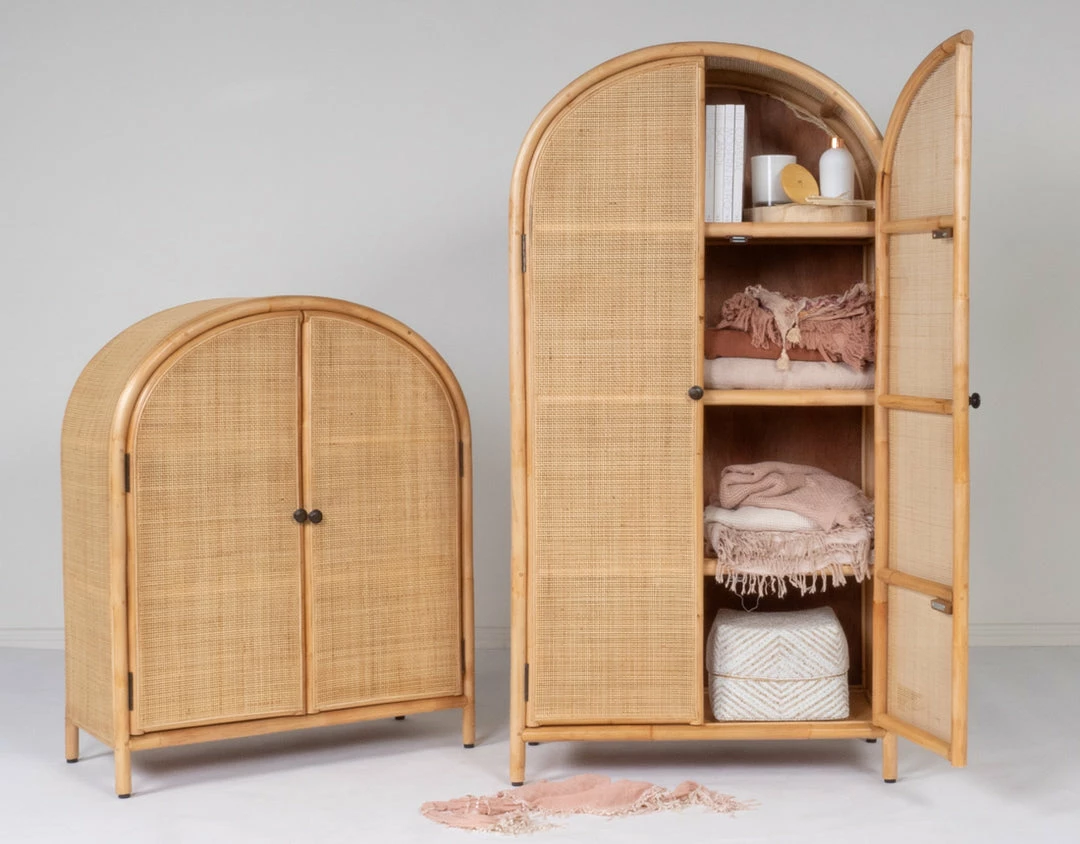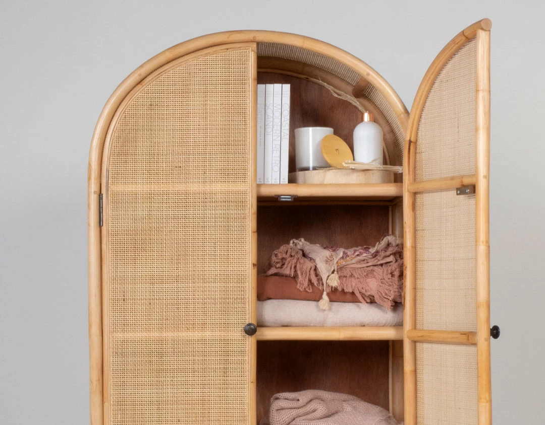 Beautiful Hand Crafted Natural Rattan Arch Storage Cabinet, perfect to store all your favourite items, linen or towels. The perfect accompaniment to our Hamilton collection and arched mirrors.
