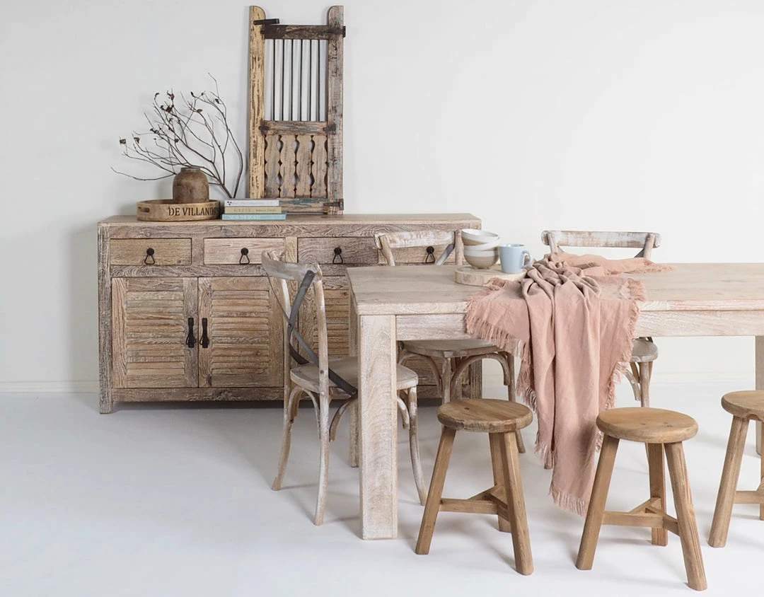 The Daintree Collection is constructed using reclaimed timbers that highlight its simplistic natural beauty. The original marks and multi-layered paints and natural lines are retained to ensure unique characteristics in each piece and tells story of our furniture’s journey to your home. Available in Waterwood and Old White Wash finishes.
