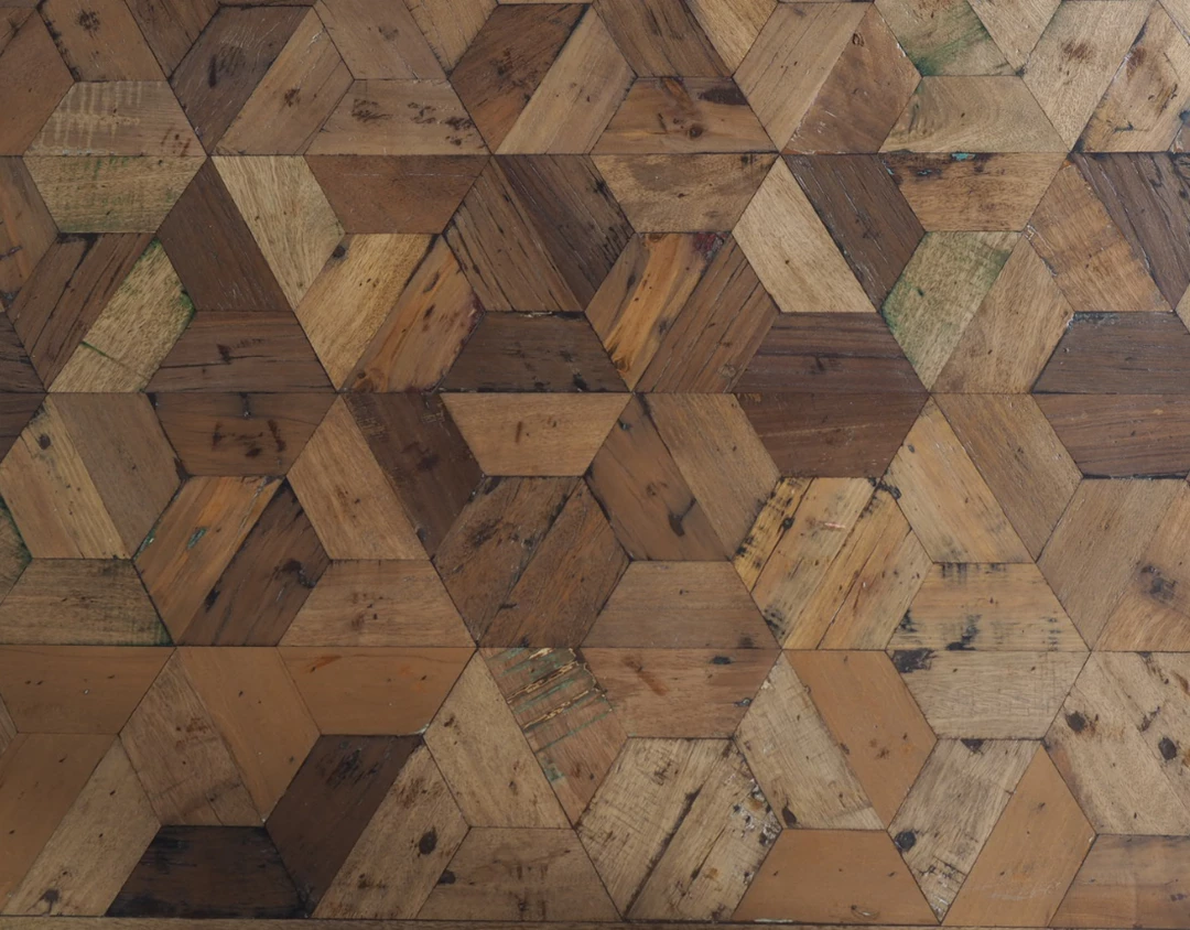 Combining the old with the new, the Hinterland Collection displays a geometric design surface with a mango wood trim edge. We combine individual pieces of reclaimed timber to create its characteristic look, each piece is delicately placed by hand into this intricate design.