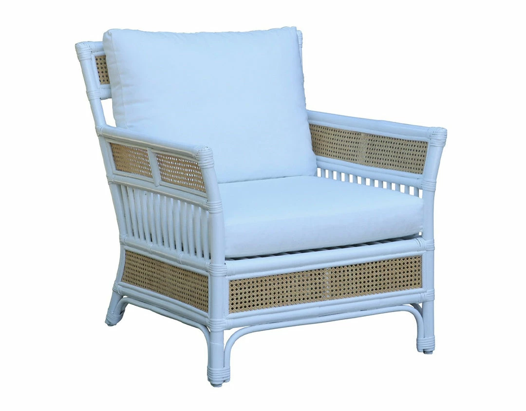 The Rivers Collection Arm Chair features a stylish modern hand woven design giving your home that taste of coastal elegance. Paired with a natural fabric soft back cushion and seat which makes it perfect to snuggle in with a book or simply to relax on those warm weather days.