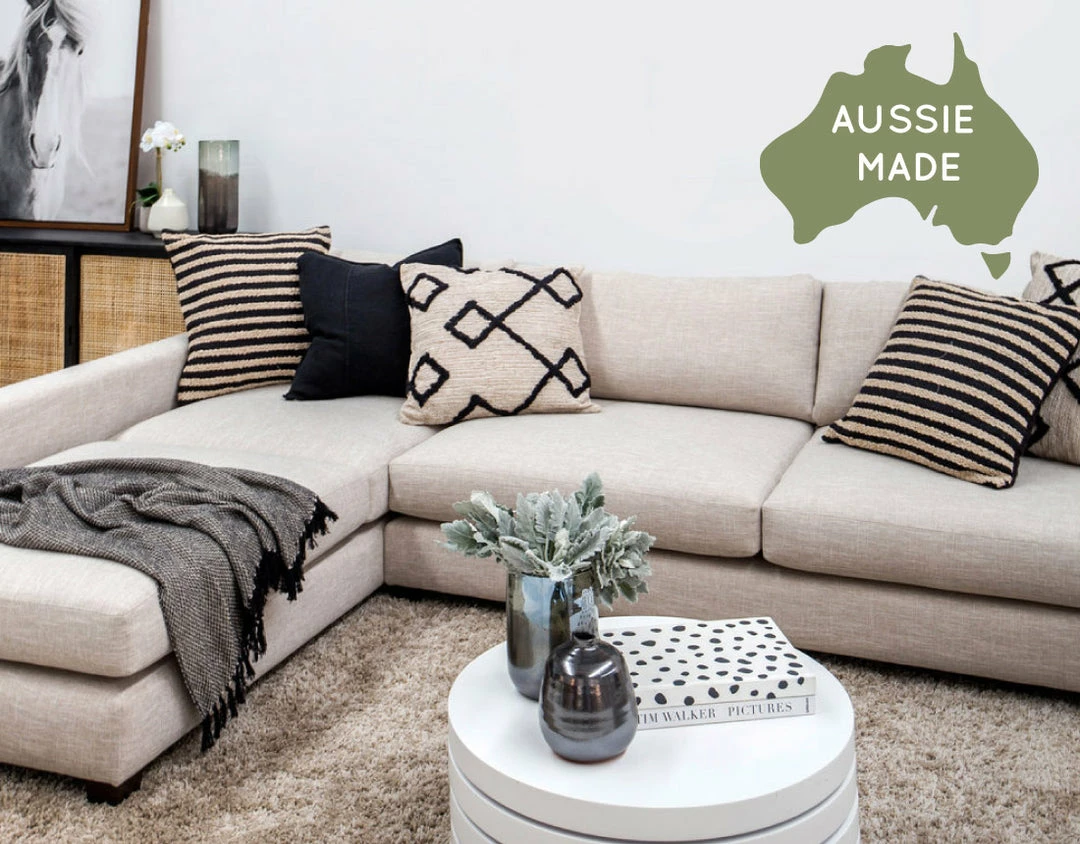 Our lounge collections are 100% Australian Made and carries a 10 Year Manufacturers Structural Warranty + 3 Year Fabric Warranty.