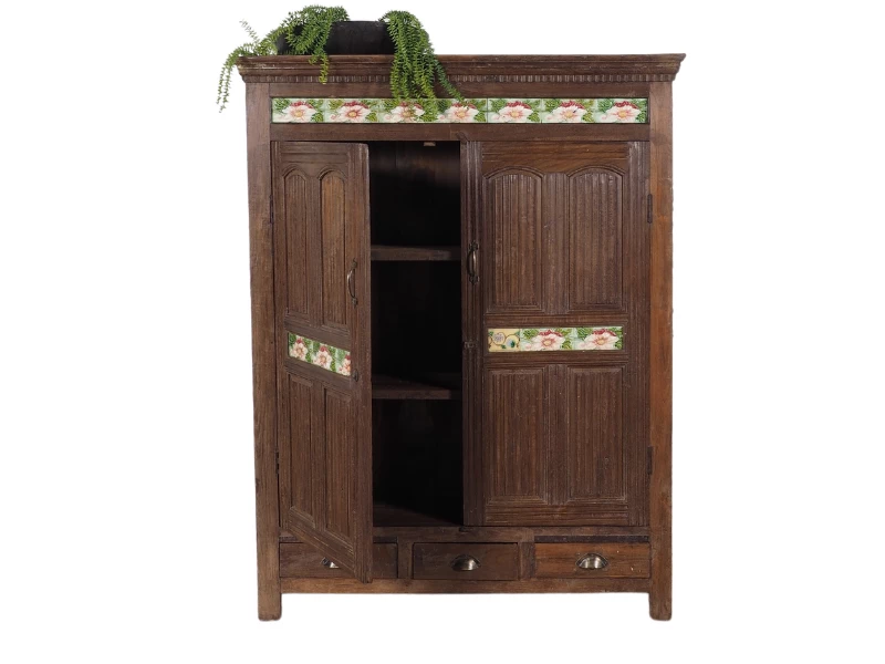 Reclaimed Vintage Cabinet features recycled tile insert 3 Draw 2 Door