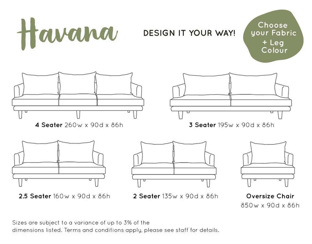 Made to order in 2, 2.5, 3 and 4 Seater options as well as an oversize single arm chair.