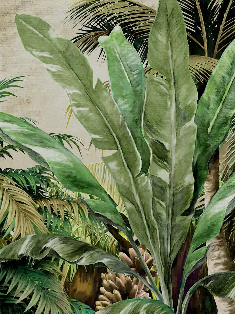 Stretched canvas art. Make a statement with this over sized art. Finished in soft vintage tones of green, also available in reverse mirror image to make a set.