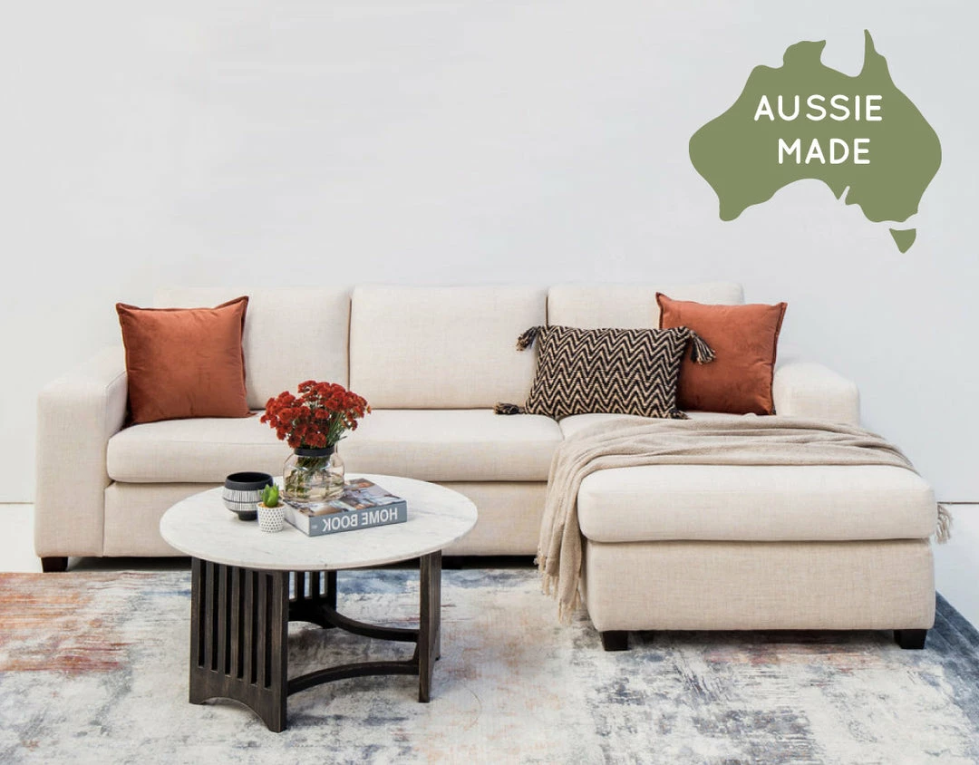 Our lounge collections are 100% Australian Made and carries a 10 Year Manufacturers Structural Warranty + 3 Year Fabric Warranty.