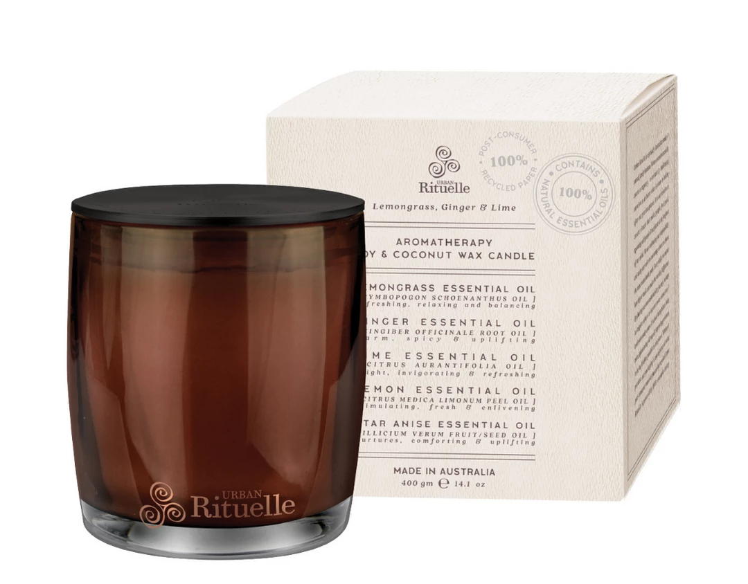 Carefully handcrafted in Australia using pure, natural Soy & Coconut wax, infused with 100% natural essential oils. This luxurious candle will naturally scent your space with a refreshing blend of zesty Lemongrass & uplifting Ginger, together with invigorating Lime, Lemon & Star Anise essential