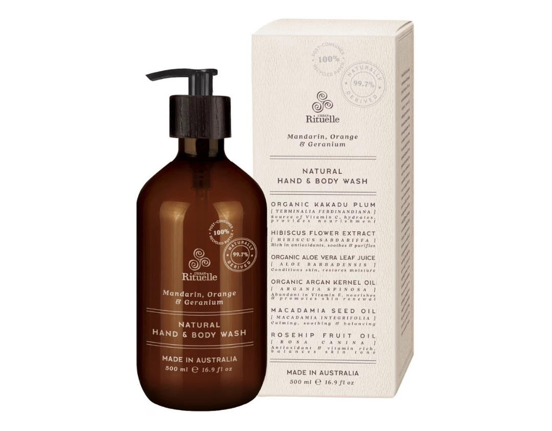 Carefully formulated with naturally derived botanical extracts of Hibiscus Flower*, rich in antioxidants & Vitamin C to revitalize & purify, together with nutrient rich organic Australian Kakadu Plum** to hydrate & provide nourishment. This luxurious hand & body wash will remove impurities without stripping skin of natural oils. Naturally fragranced with Mandarin, Orange & Geranium essential oils.