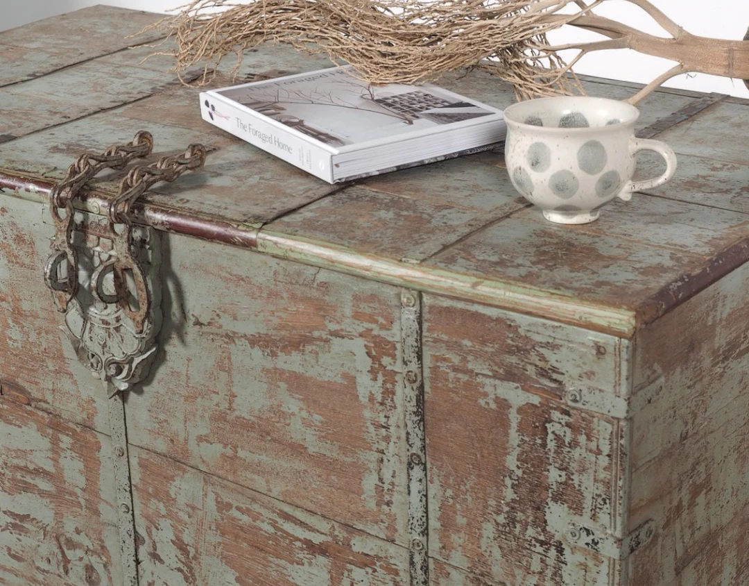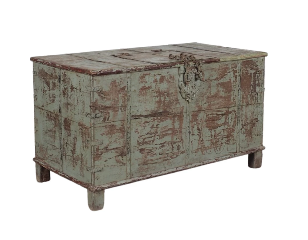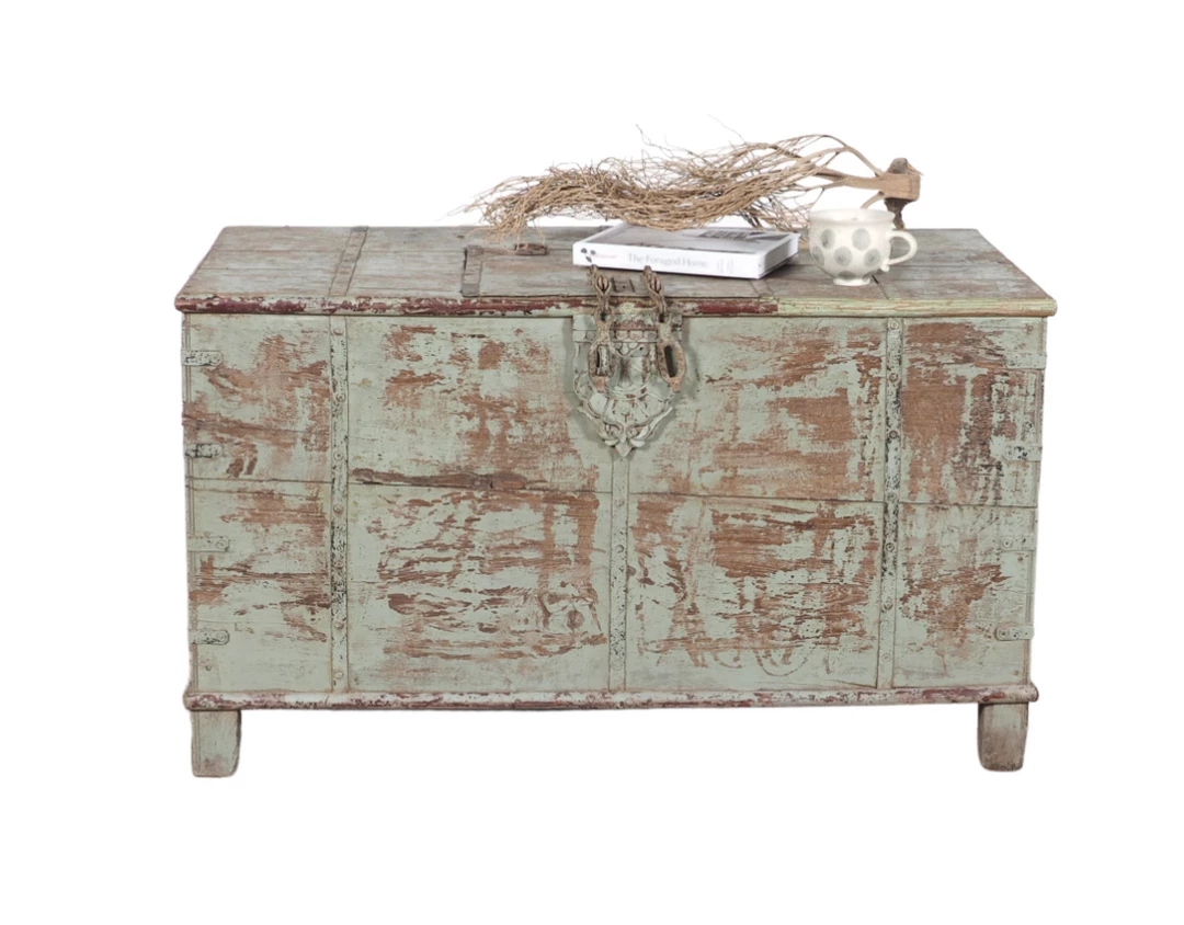 This Vintage Found Indian Trunk will add warmth and soul to your home , a unique storage solution for all your treasures and makes a one of a kind coffee tableÂ